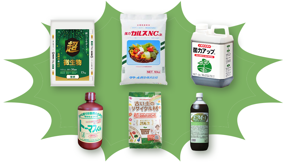 • 微生物資材」を活用すれば、再利用どころか、土の改善、収穫量アップも期待できます