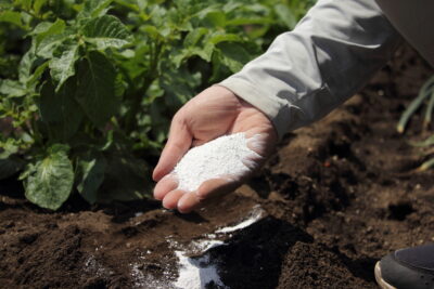 そして早速、用意した微生物資材を土に撒きます。一点に集中させるのではなく、全体に満遍なく行き渡るようにパラパラと撒くのがコツです。なお、微生物資材には粉状、粒状、液状など様々なタイプが存在します。そのため、適切な散布量や詳しい使用方法については、必ず各製品のパッケージやメーカーのホームページを確認するようにしてください。